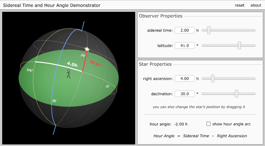 Muestra el sistema de coordenadas celeste-ecuatorial ( AR/Dec), en el que la declinación