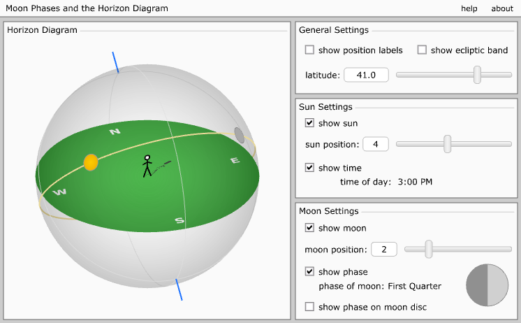 Proporciona un método para aprender la correlación entre la fase de la Luna, la hora del día y la posición de la Luna en el cielo.