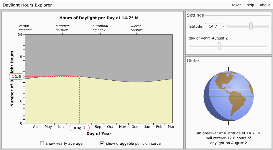 Muestra las horas de luz diurna recibidas durante el año por un observador en una latitud