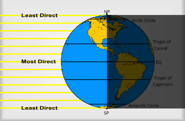 Muestra cómo los rayos más directos del sol inciden en diferentes
