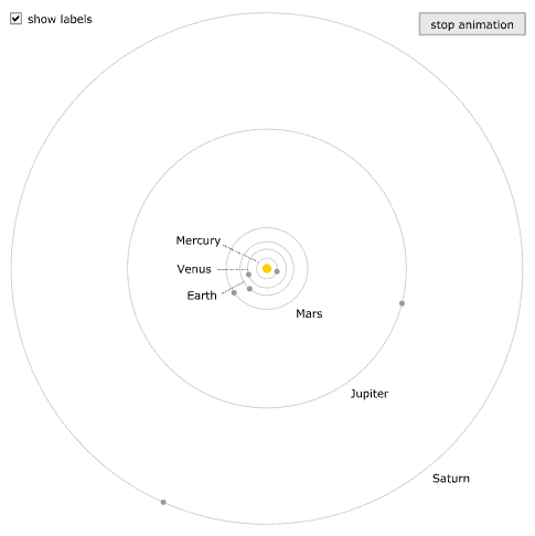 Modela los movimientos de los planetas alrededor del Sol en un modelo copernicano simplificado del sistema solar.
