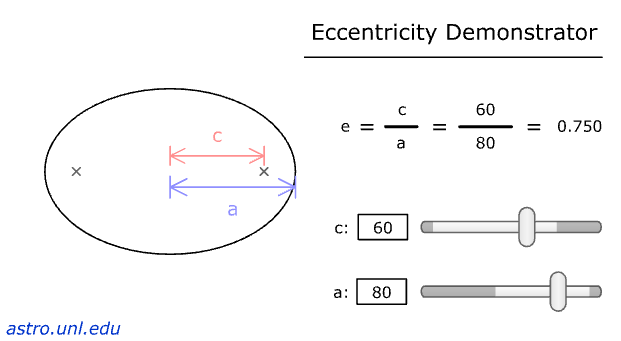 geometría orbital. Puedes arrastrar los dos cuerpos para ver