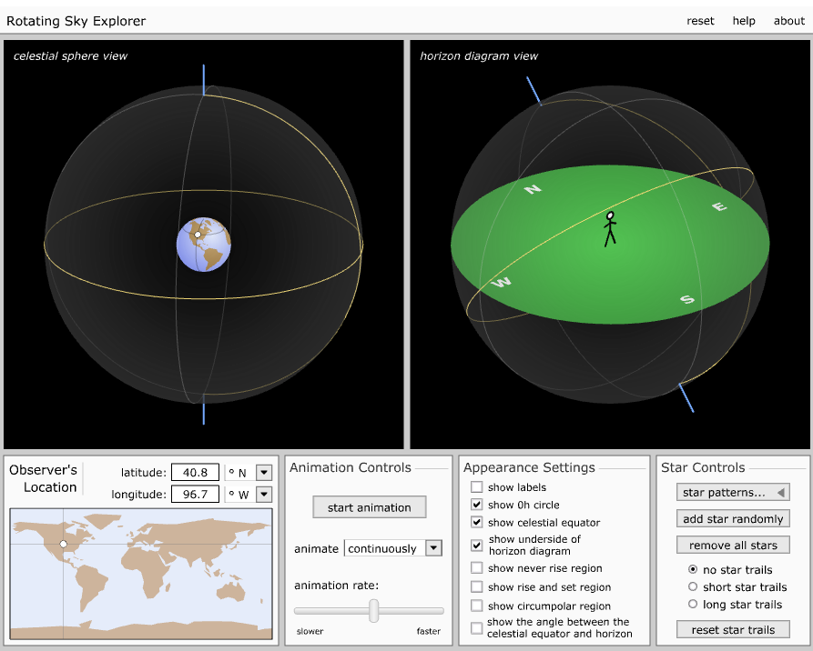 Muestra el sistema de coordenadas celeste-ecuatorial ( AR/Dec), en el que la declinación