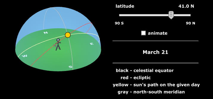 Este simulador permite tanto la representación orbital como la de la esfera celeste de los movimientos estacionales.