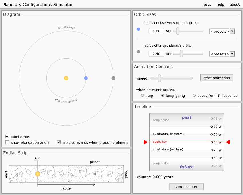 Modela los movimientos de los planetas alrededor del Sol en un modelo copernicano simplificado del sistema solar.