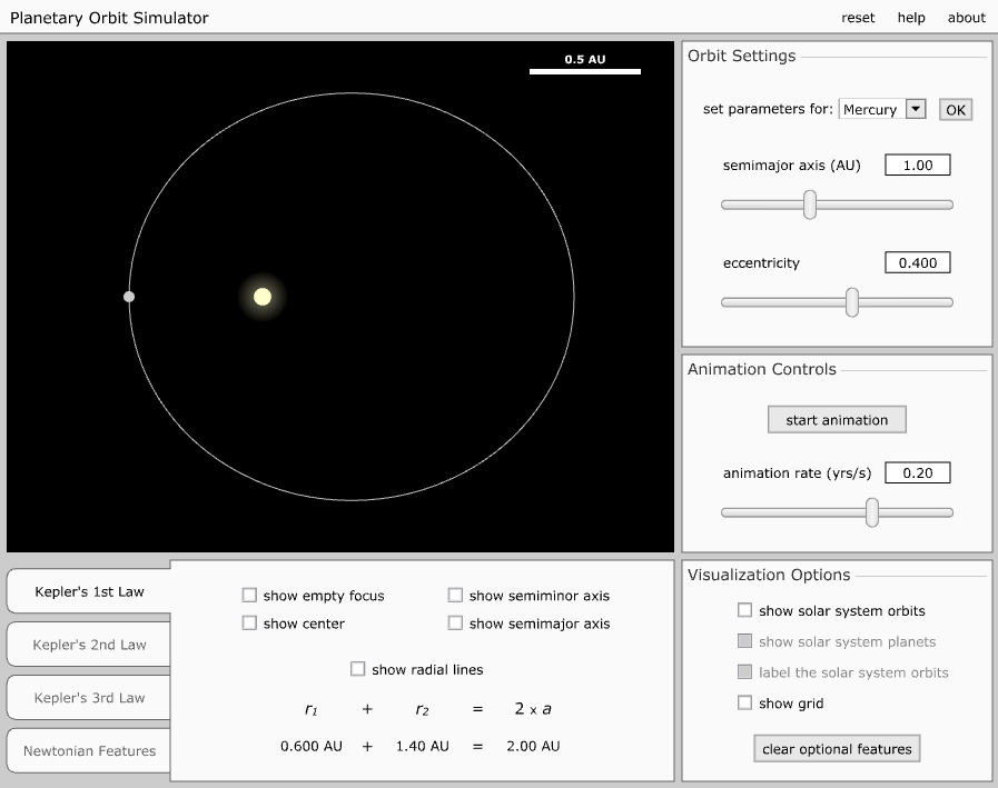 geometría orbital. Puedes arrastrar los dos cuerpos para ver