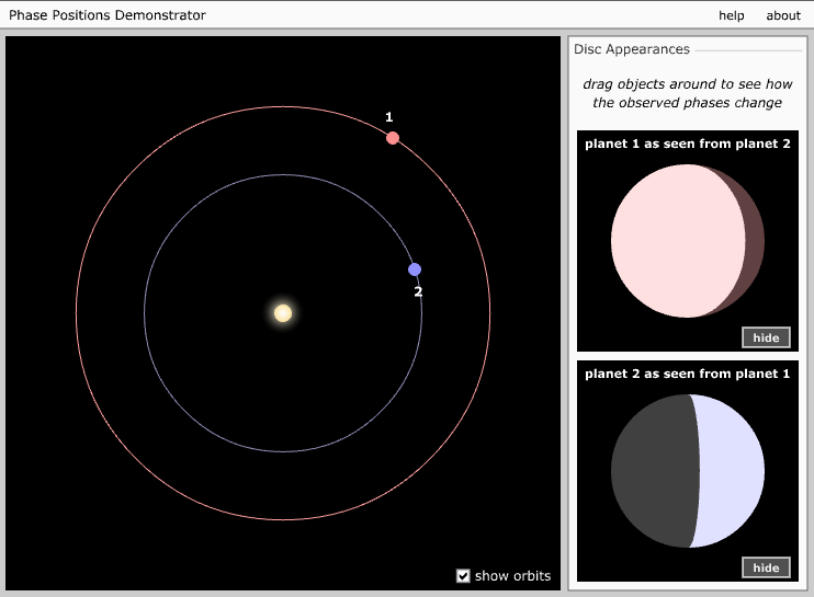 Muestra cómo las fases de los planetas y de la Luna dependen de la
